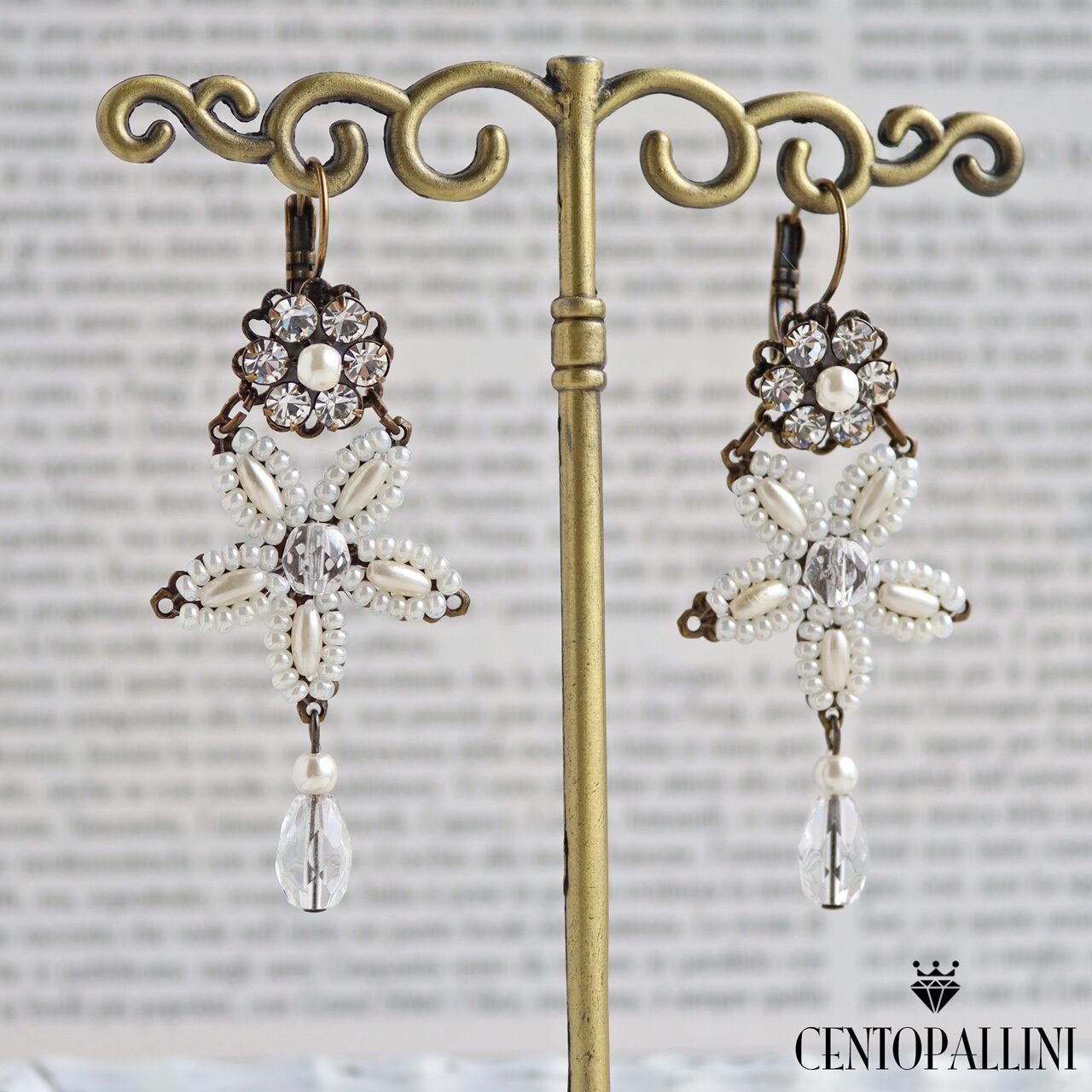 星の煌めきを耳元に。ホワイトパールビーズで丁寧に作られたスターモチーフが、クリスタルティアドロップと共に優雅に揺れるフックピアスです。