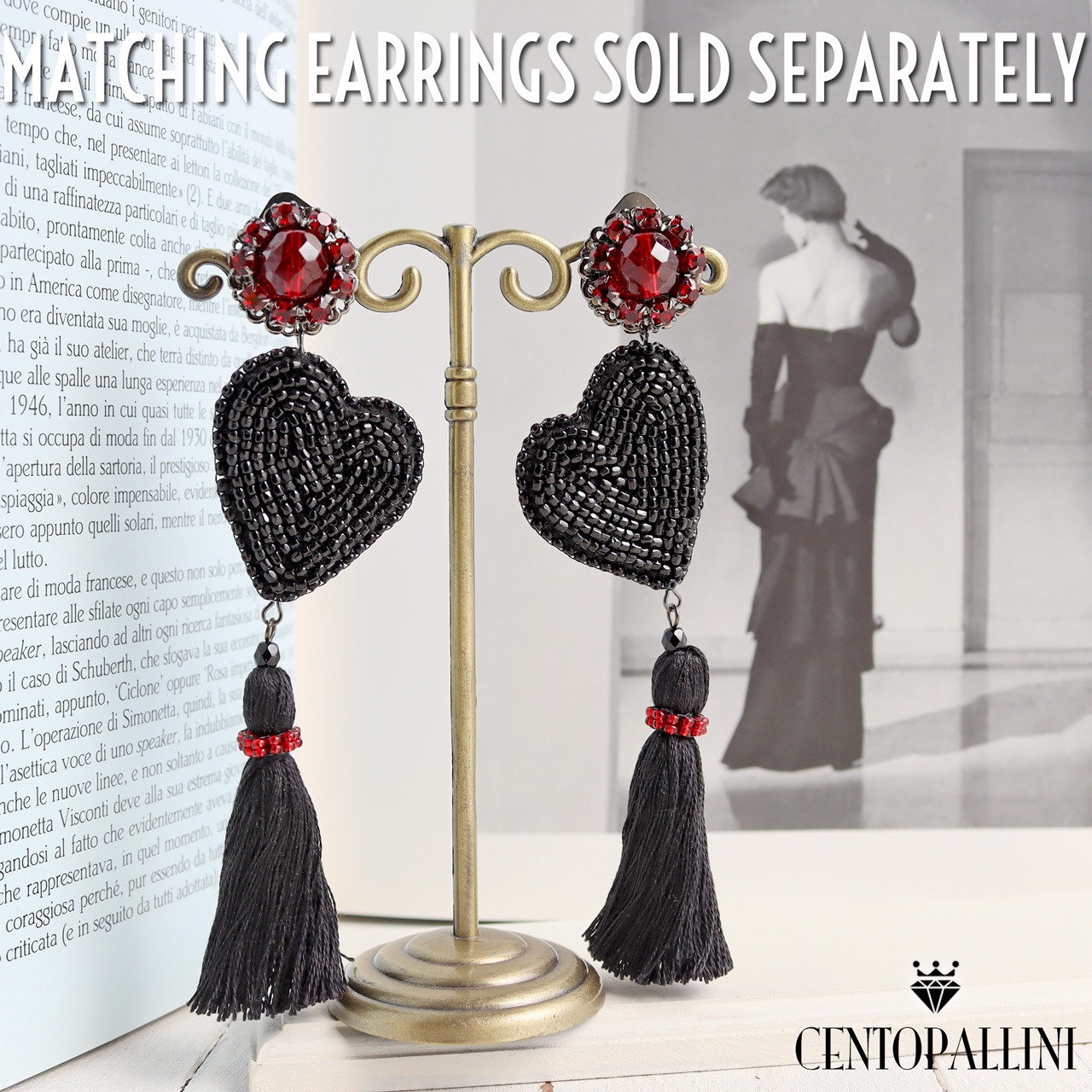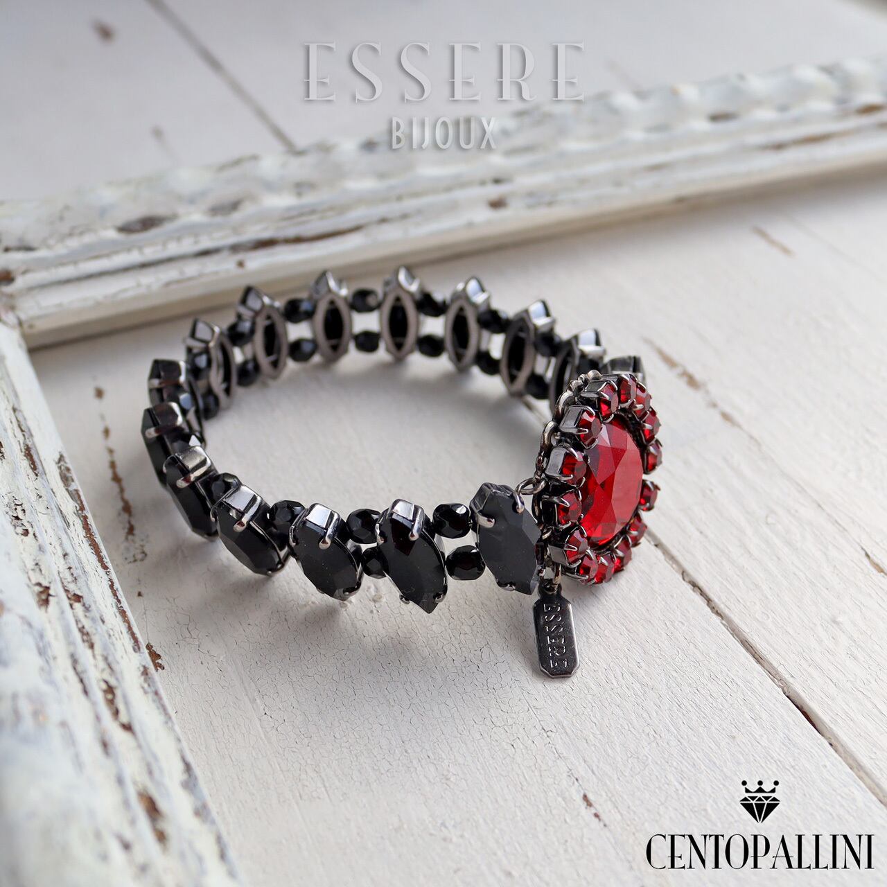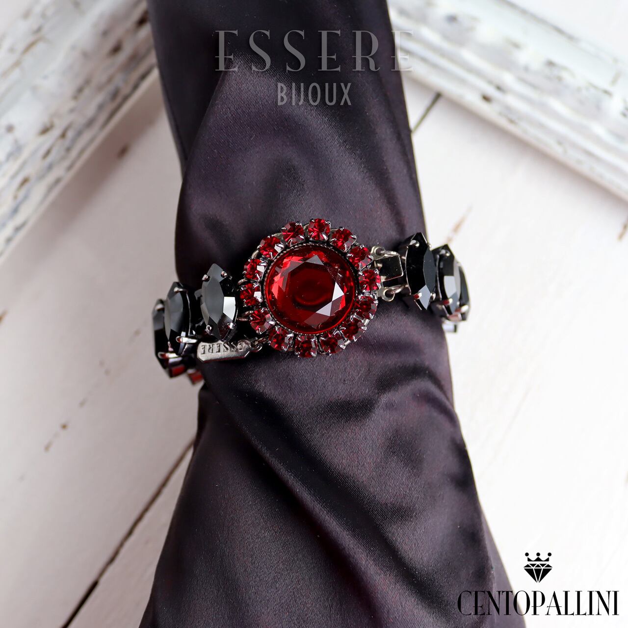 憧れの舞台女優のように、あなたを主役にするための特別なアイテムです。深紅のクリスタルとラインストーンが美しく光を受けて妖しく艶やかに輝きます。