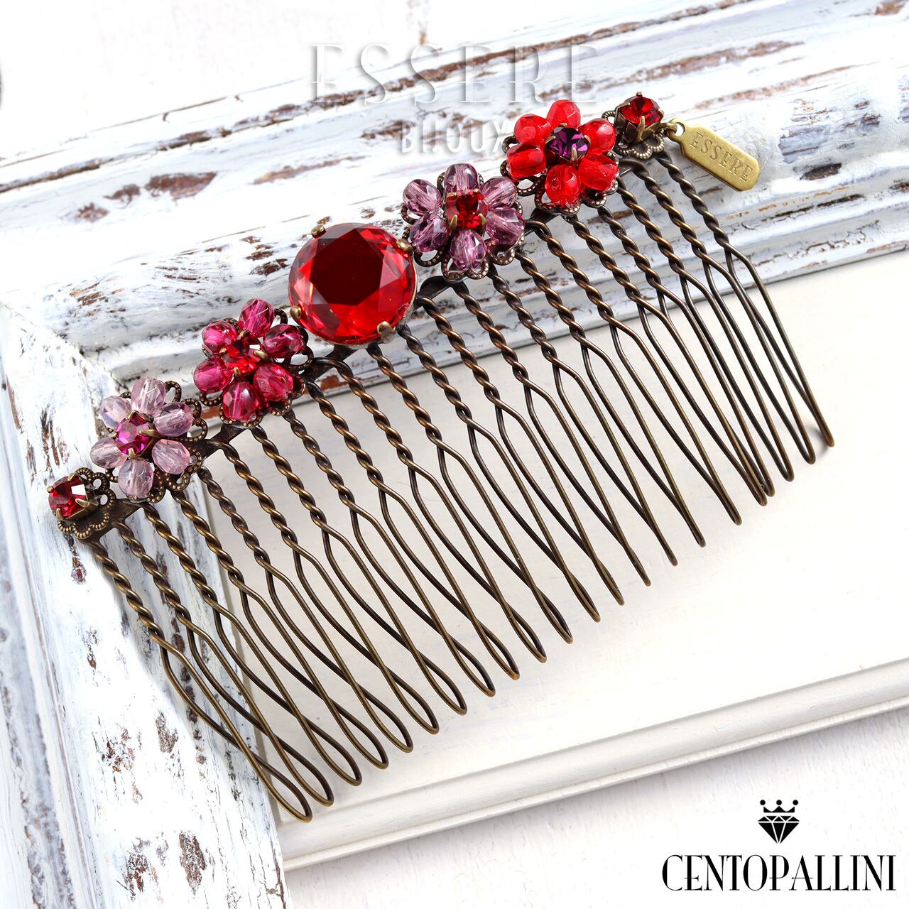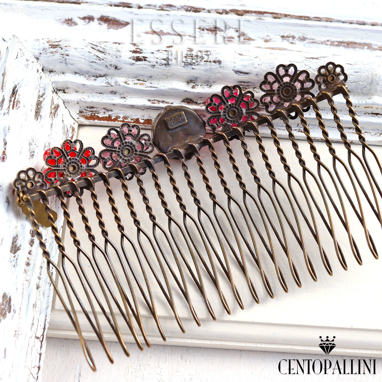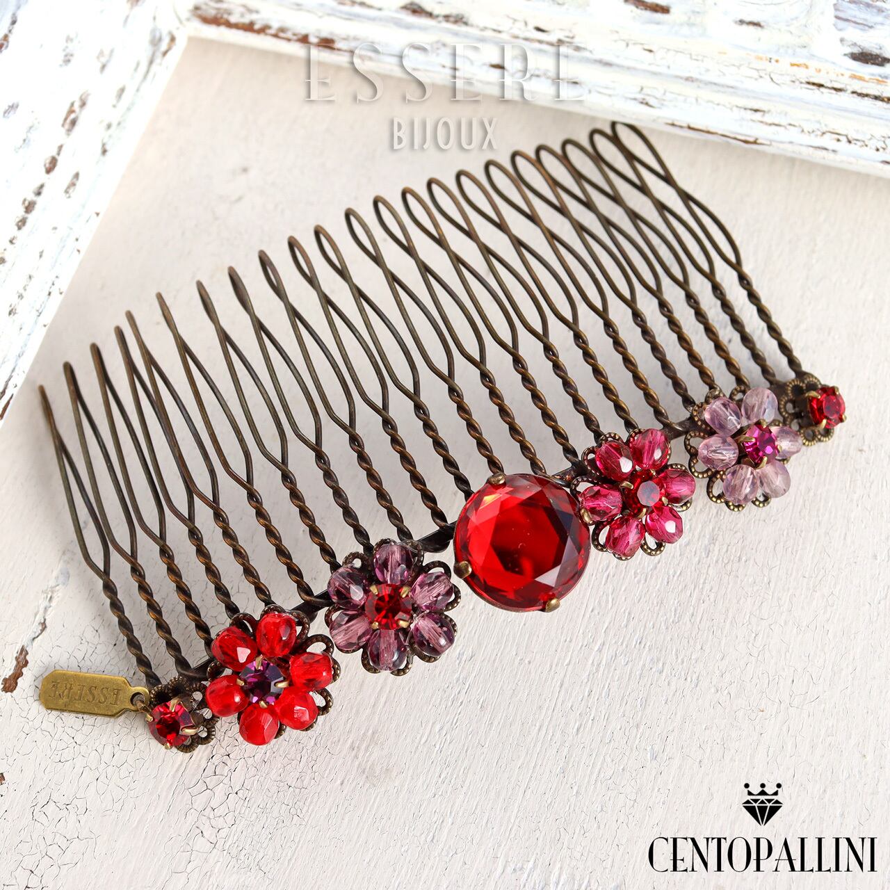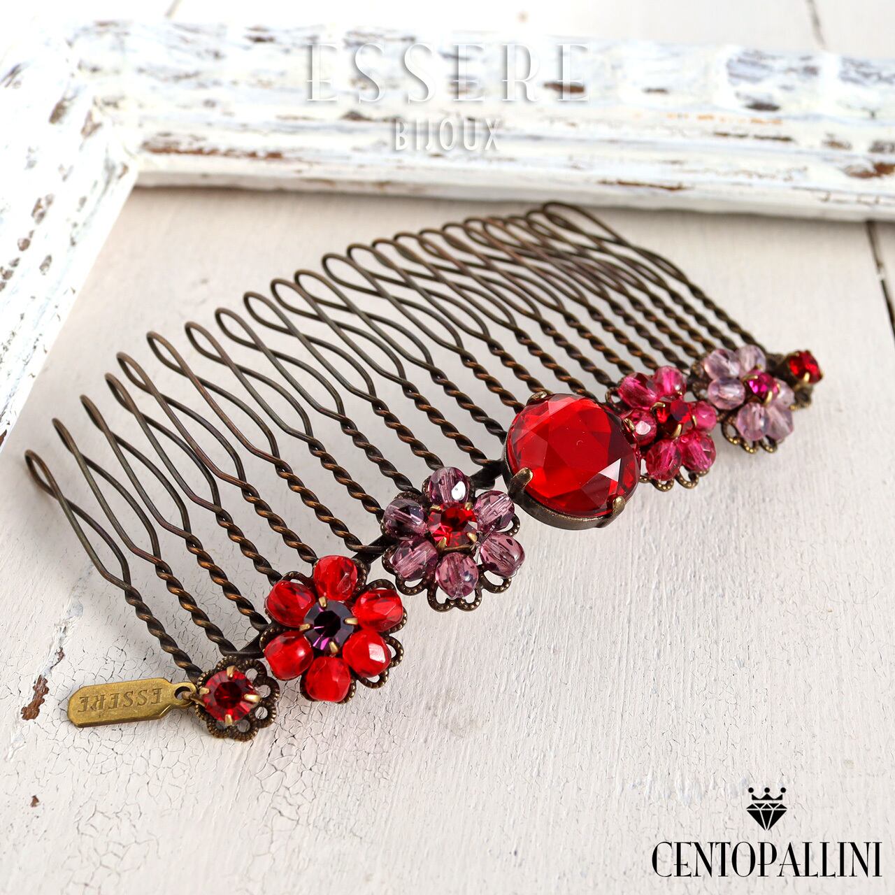 プレシオサクリスタルとチェコビーズのフラワーモチーフのコームは、キュートなイメージを髪に添え、大人可愛い装いです。