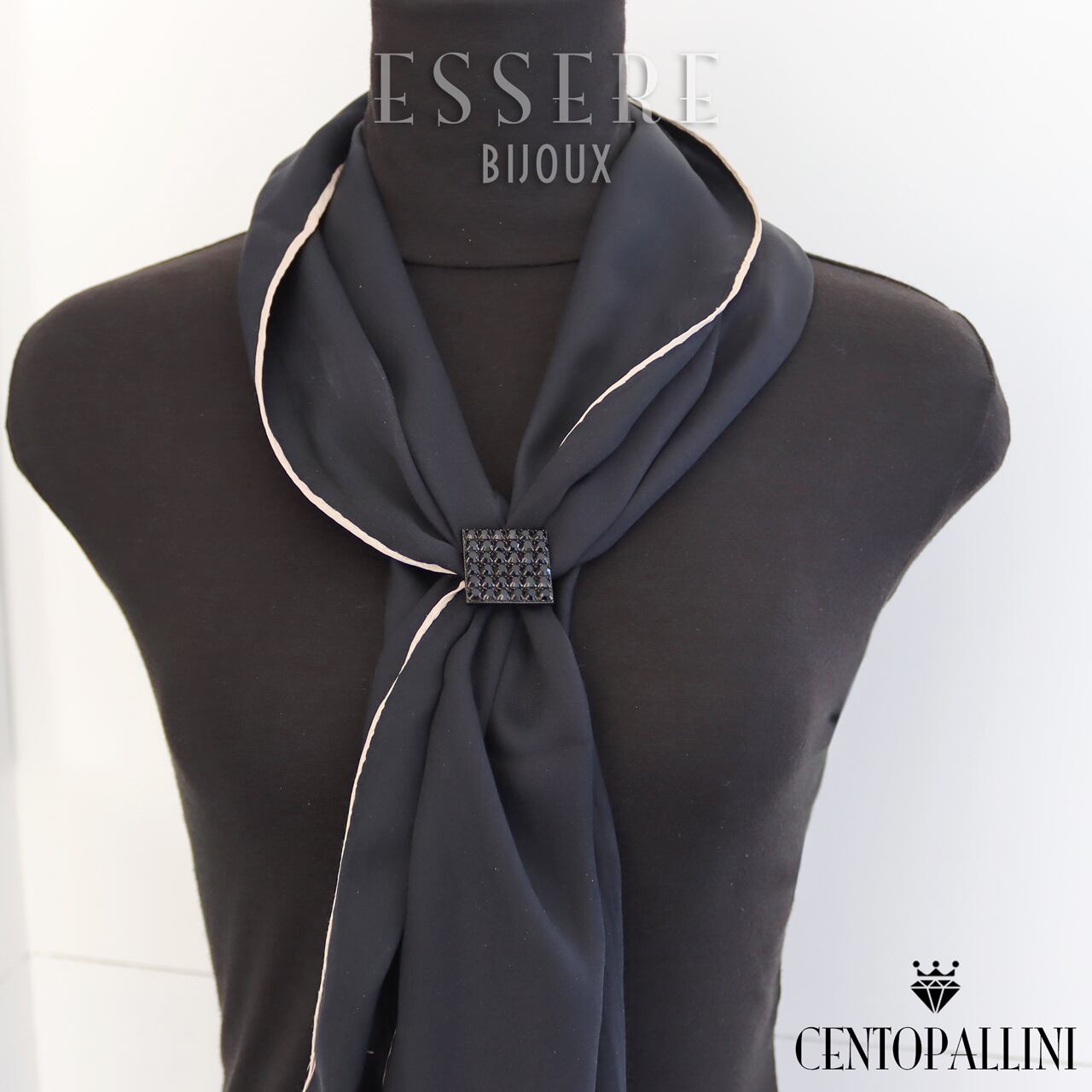 モノクロームの美・シックなスクエアスカーフクリップ