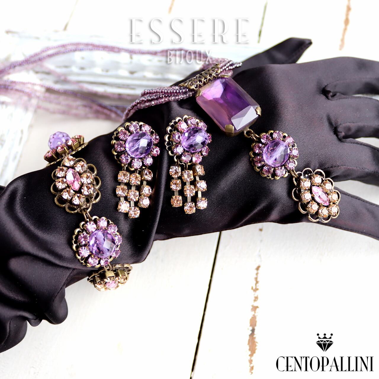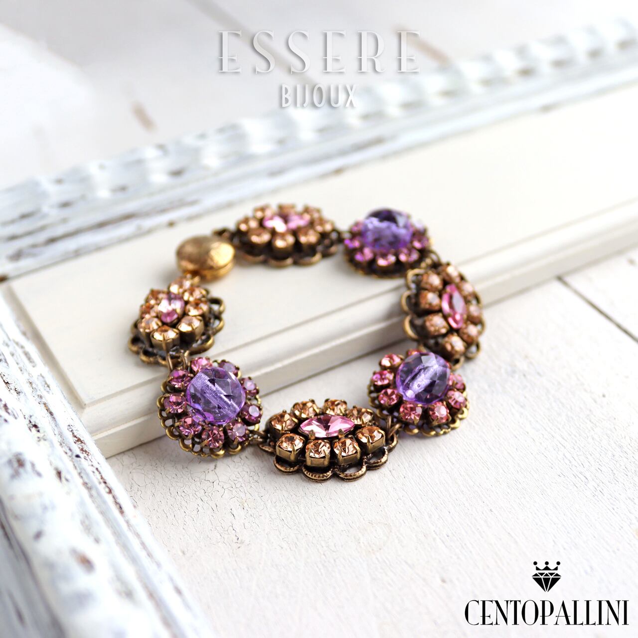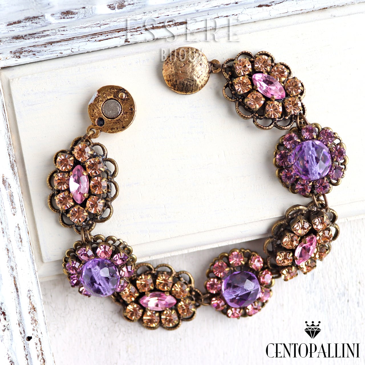 ライトアメジストとライトピーチのプレシオサラインストーンとクリスタルが織り成す絶妙なカラーコンビネーションが、手元に春の煌めきをもたらします。