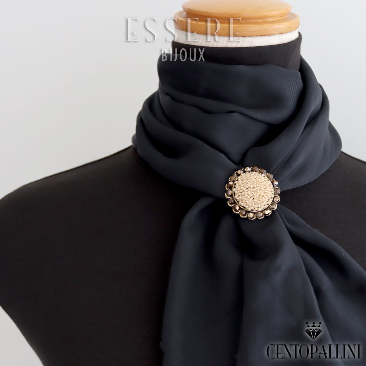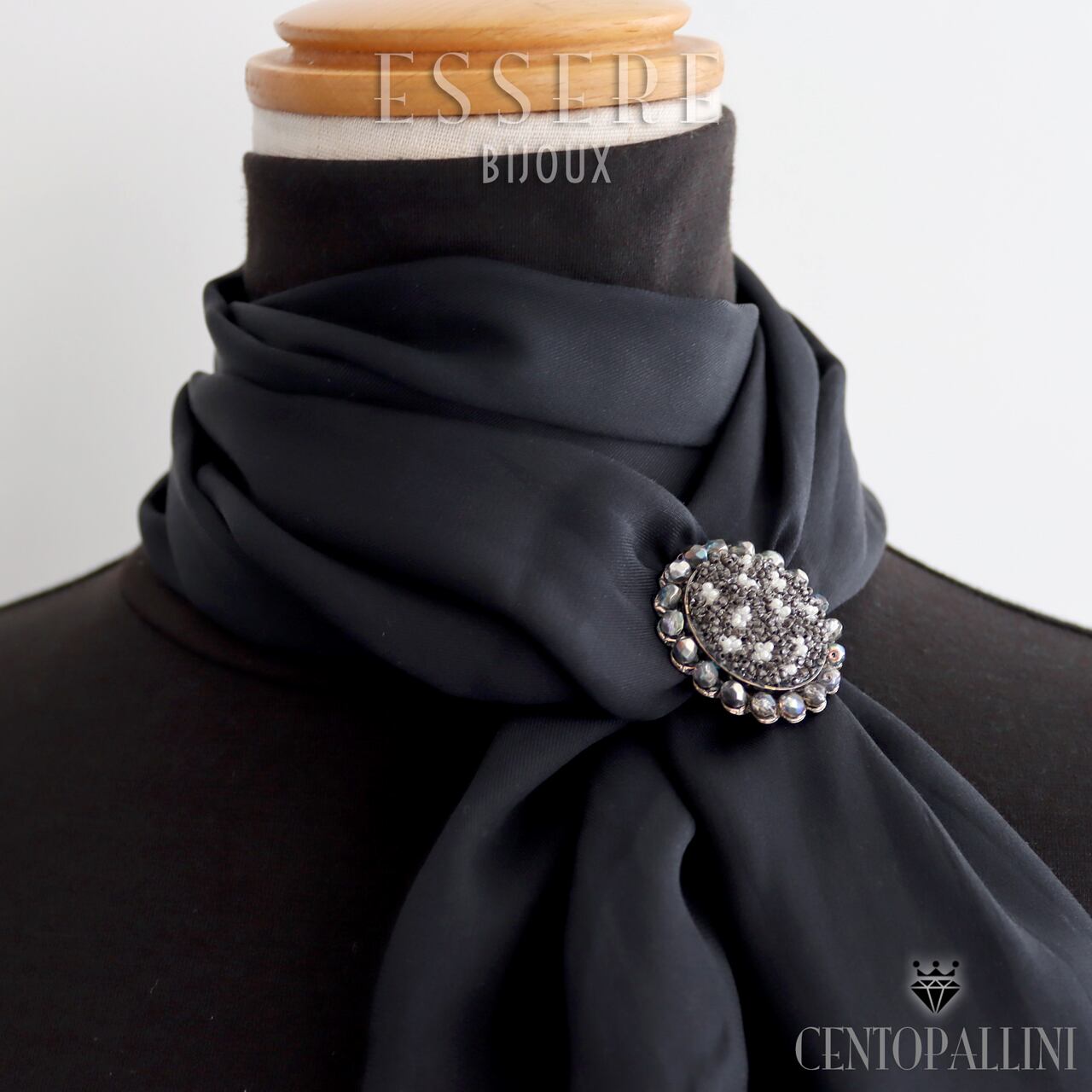 真鍮製のクリップが薄手のスカーフをしっかりとホールドし、風の強い日でも安心してお使いいただけます。コートが不要なこれからの季節、軽やかなおしゃれを楽しむのに最適なアイテムです。