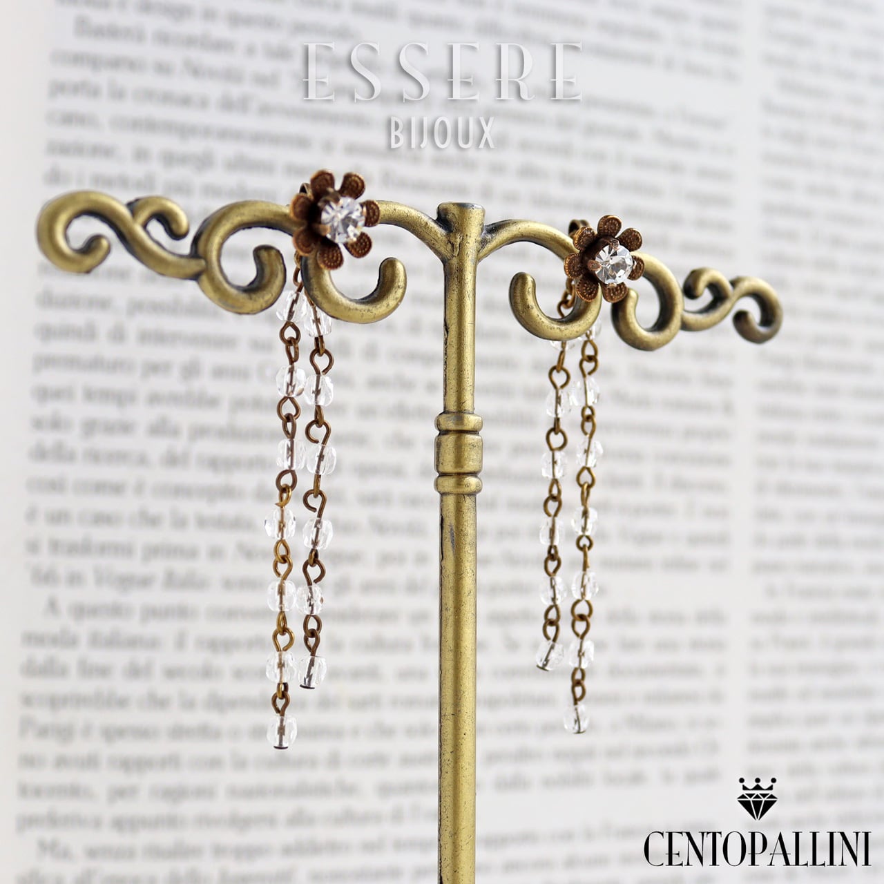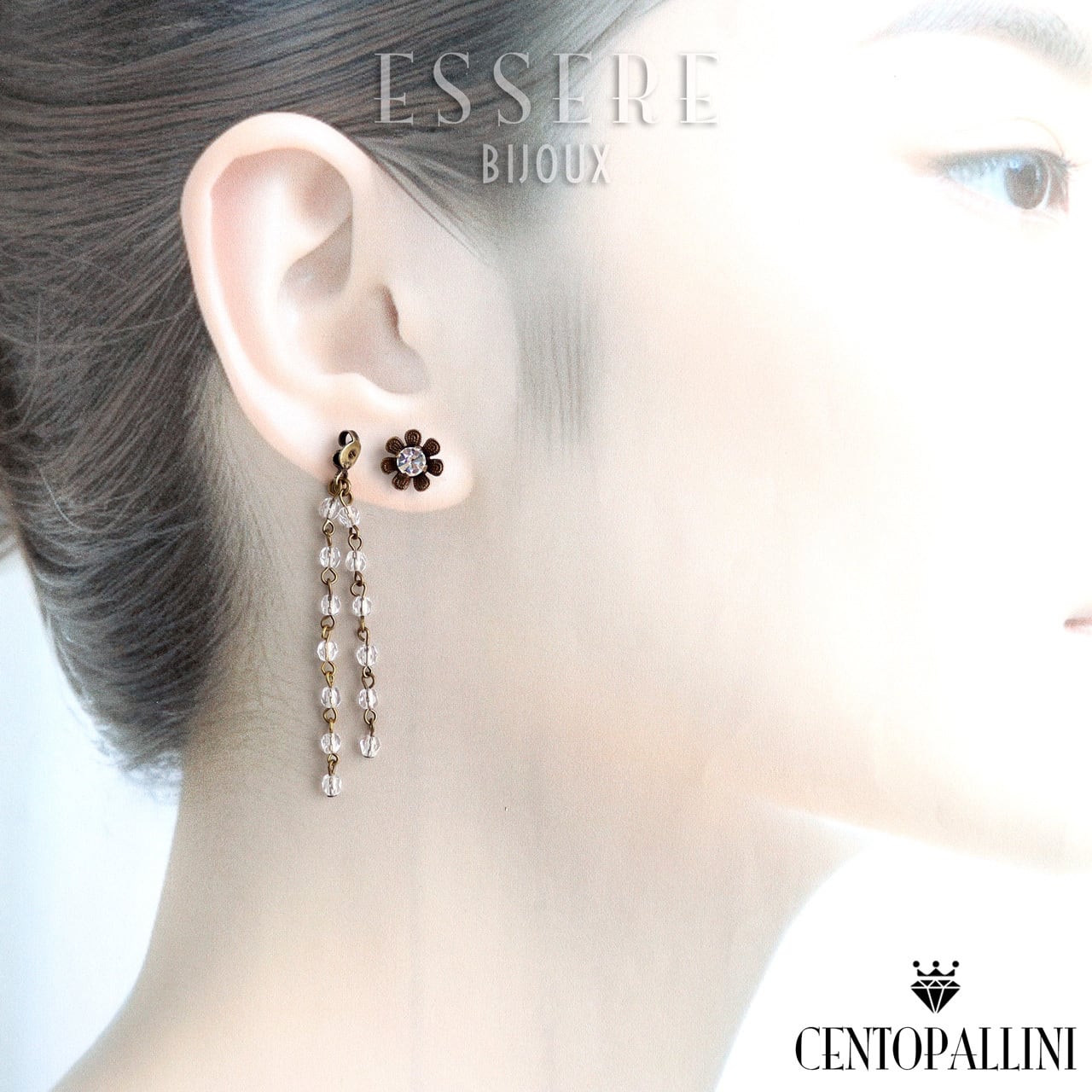 中心にセットされたスワロフスキーのクリスタルが、まるで小さな花のように優雅に光を放ちます。バックキャッチにはクリスタルチェコビーズが揺れ、動くたびにキラキラとした光のダンスを演出します。✨