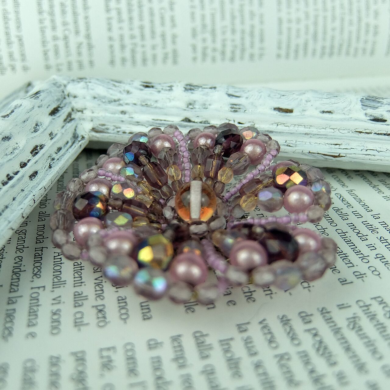 ガラスパールの花モチーフが上品な6枚の花びらのマグネットブローチです。。