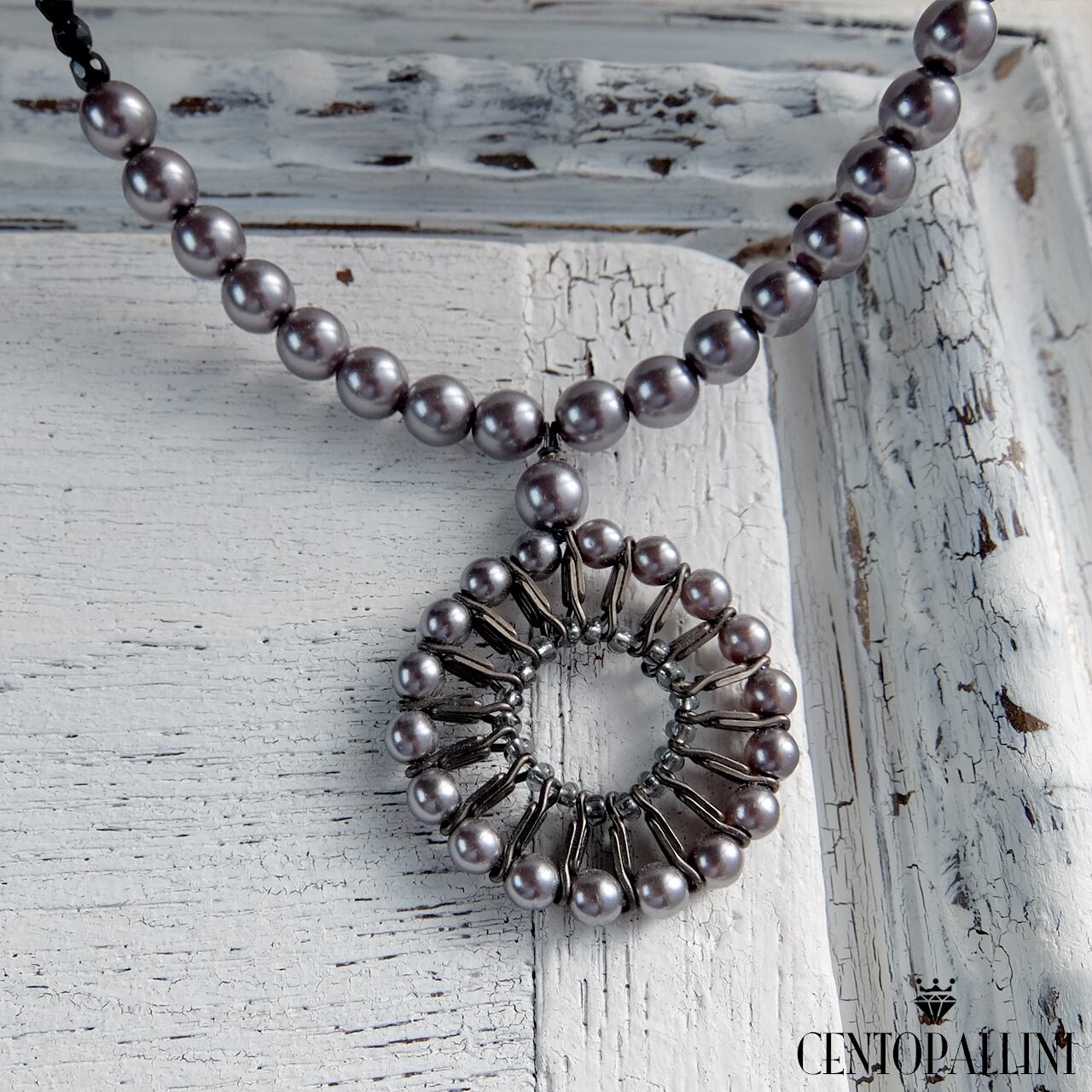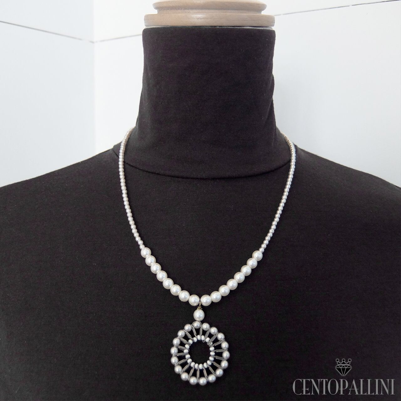 イタリアンガラスパール ペンダントネックレスは、高品質なイタリアンガラスパールを使用した上品なデザインです。ネックレスの中心には、真鍮チェーンを1つずつカットしたものを円状にパールで形作りました。