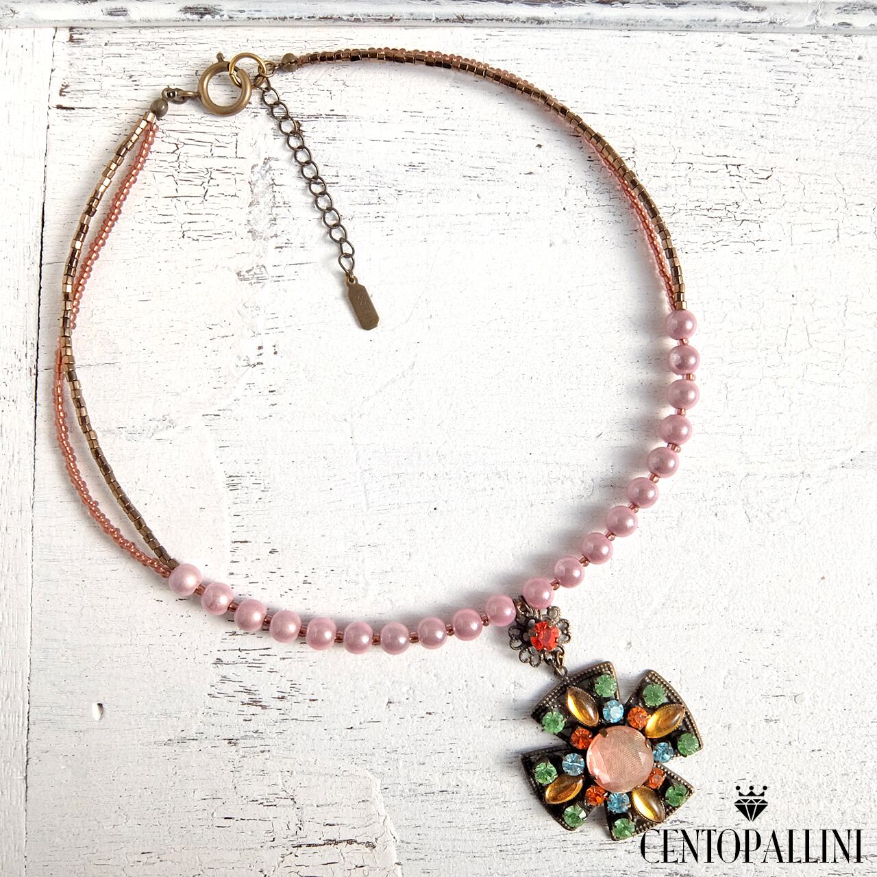 素材:チェコガラス、真鍮、クリスタルラインストーン