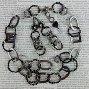 チェコビーズリング&真鍮オバールリングのショートネックレスとピアスのセット、モノトーンリングネックレスとピアスのセットです。