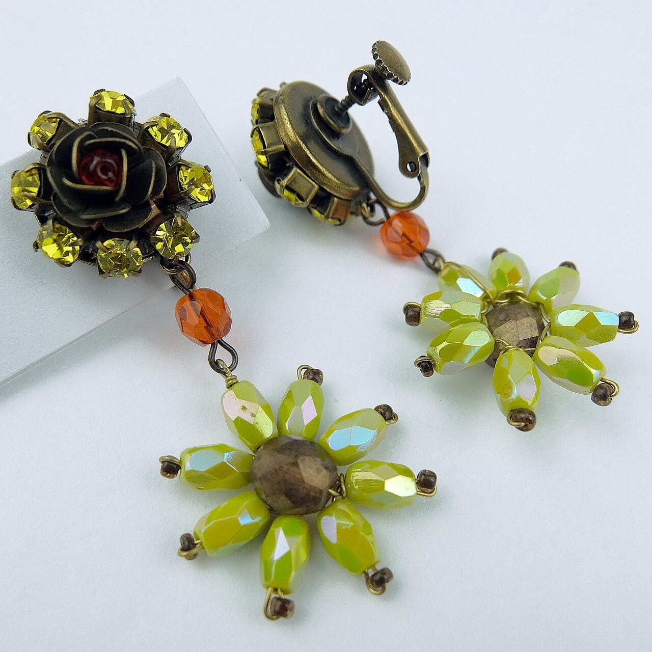 さまざまな色合いのガラスパーツをバランスよく組み立てました。