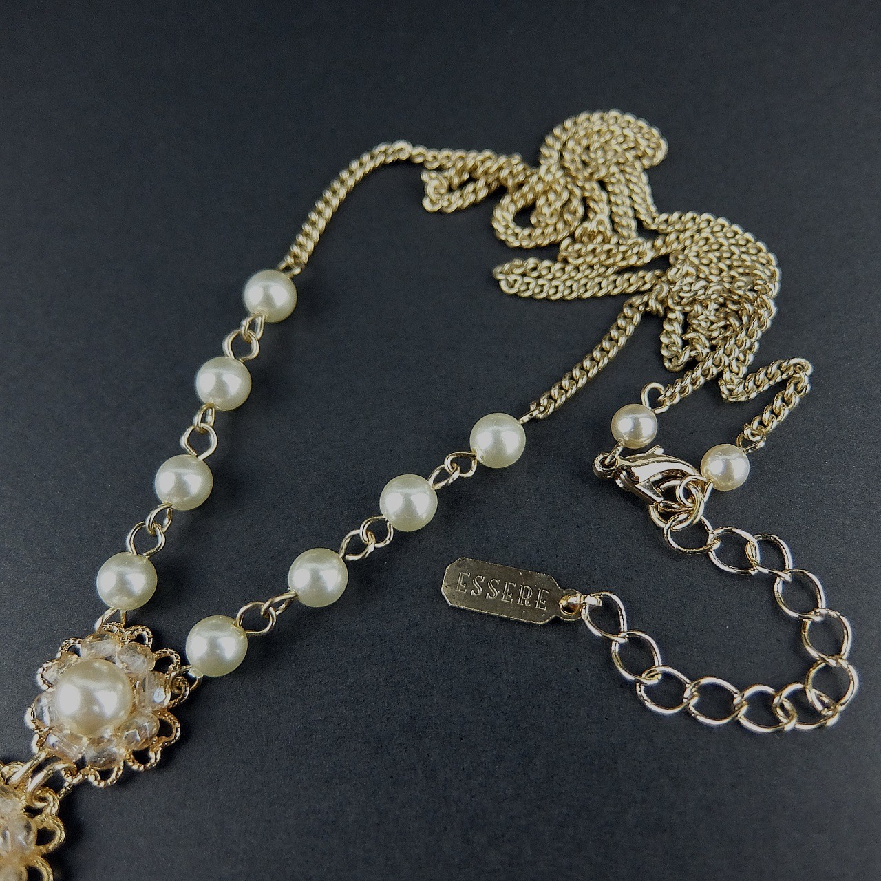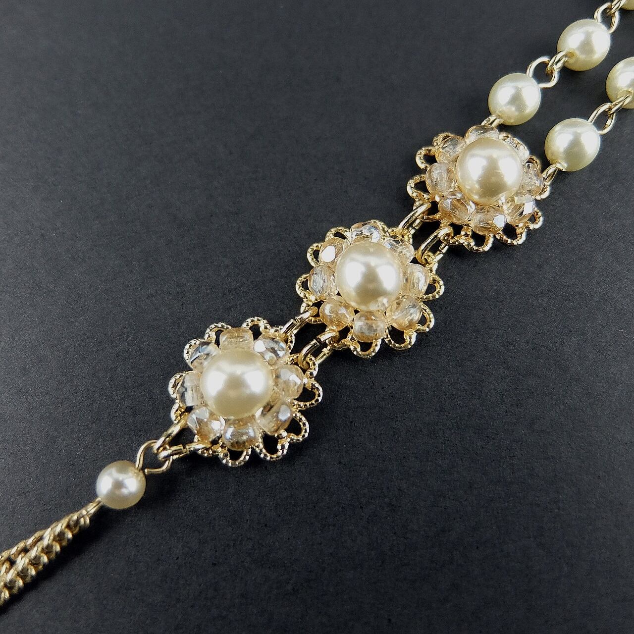 小さな透かし彫りに6ミリパールとビーズをハンドメイド刺繍しています。