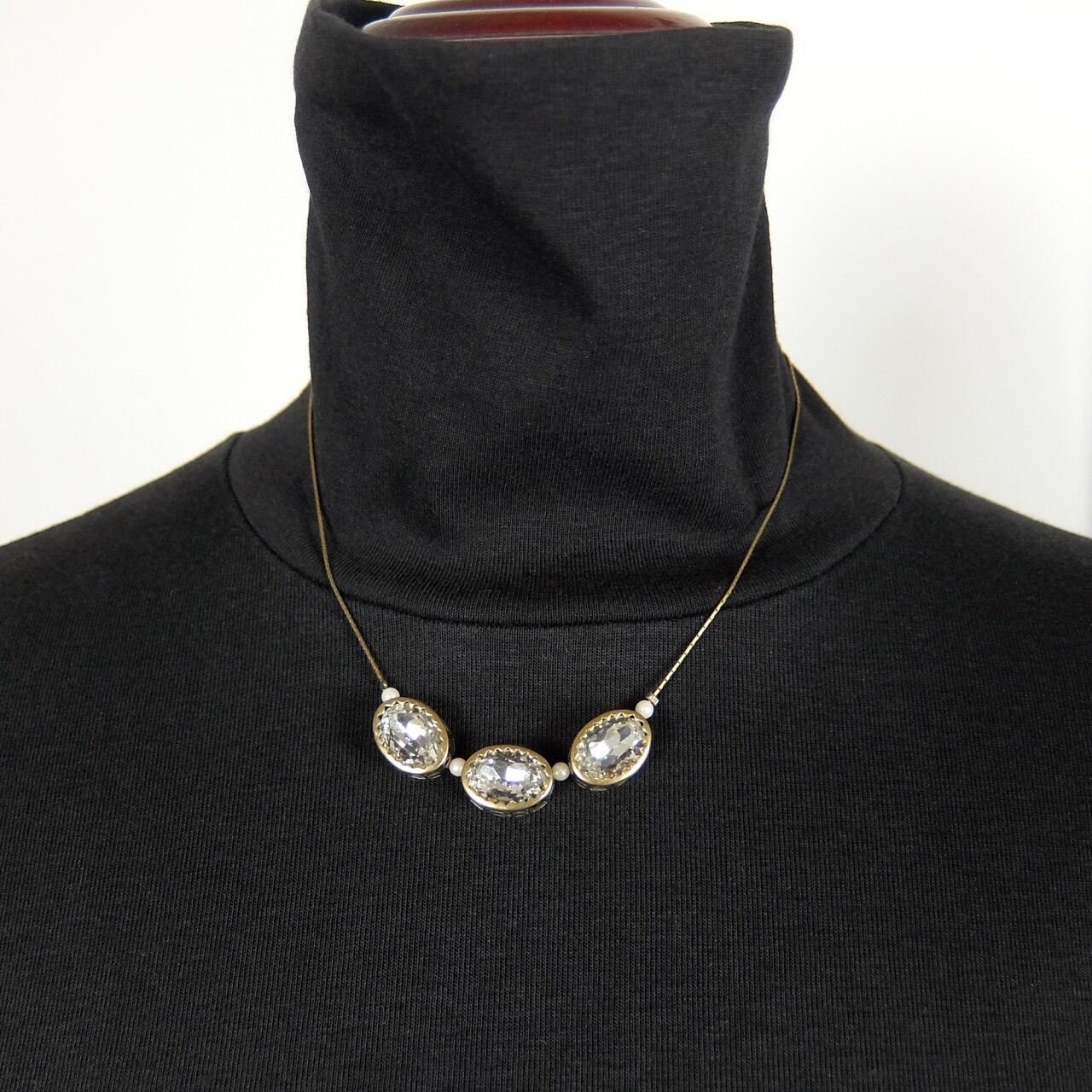 シンプルなデザインが魅力のクリスタルラインストーンと真鍮の細いチェーンを合わせたネックレスです。