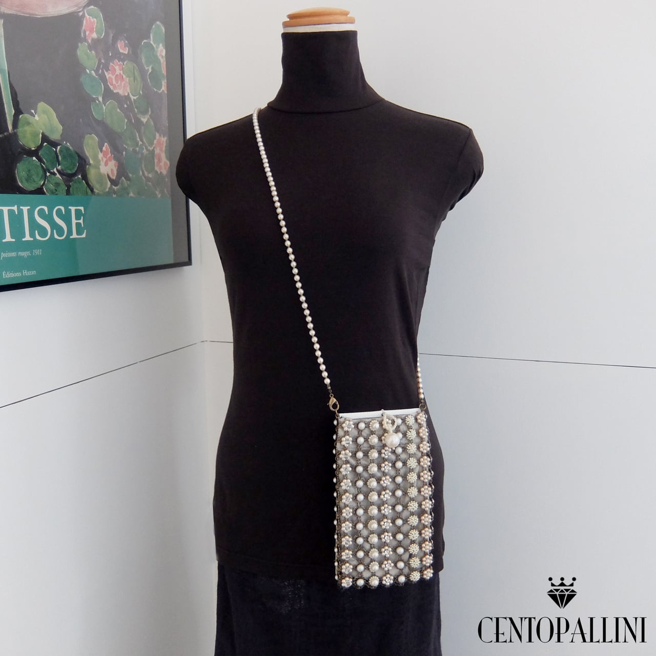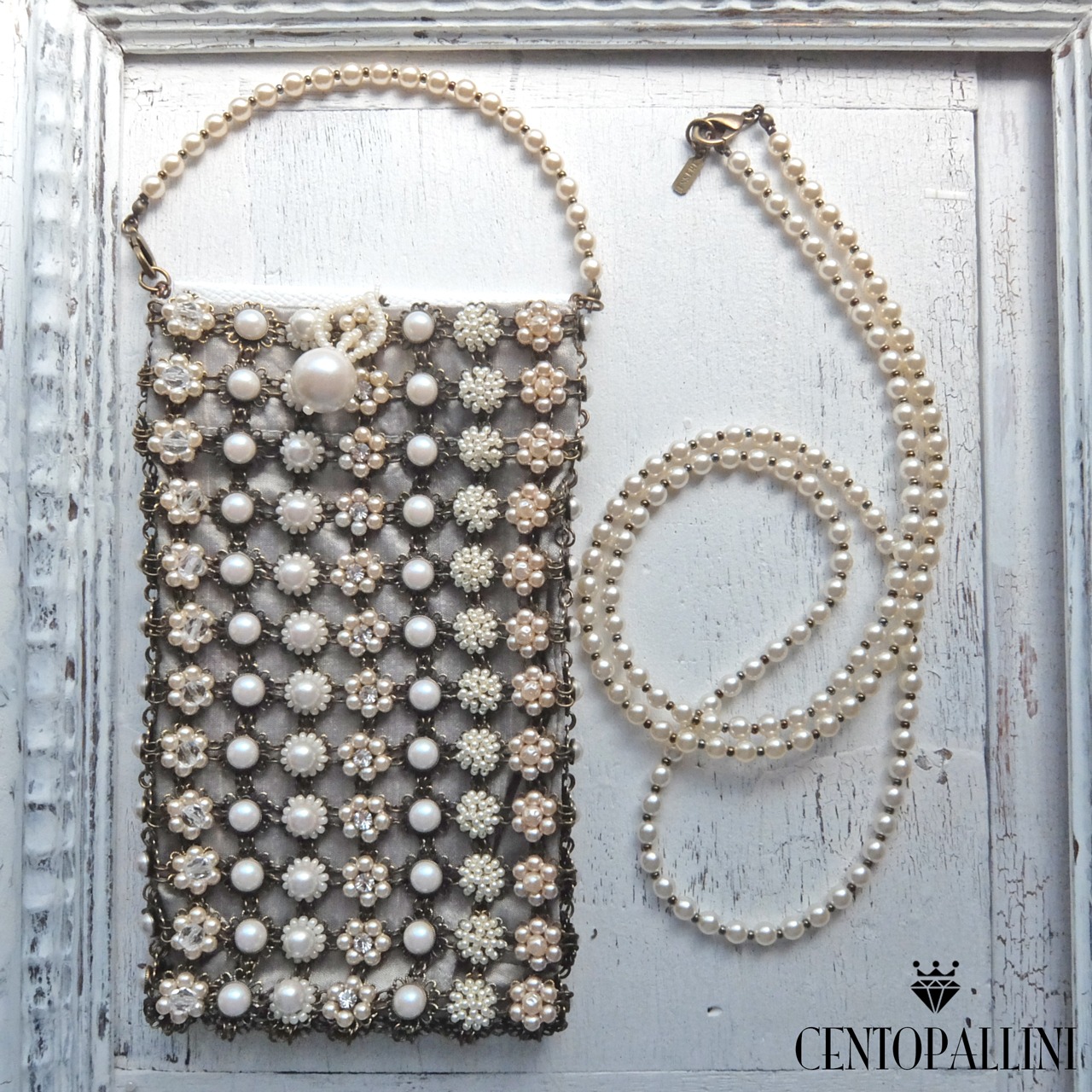 ガラスパール&ラインストーンのビーズ刺繍を施したショルダーバッグ・スマホケース・ 2wayネックレス&ビーズポシェット
