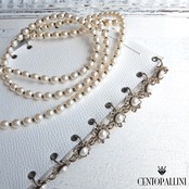 小さな透かし彫りパーツに、ガラスパールやクリスタルラインストーンを、ひとつひとつビーズ刺繍しております。
