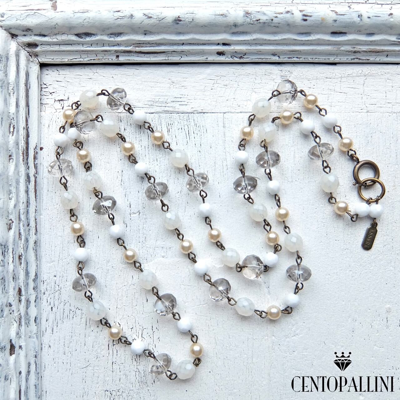 9ピンでつないだチェコガラスのチェーン ロングネックレスです。