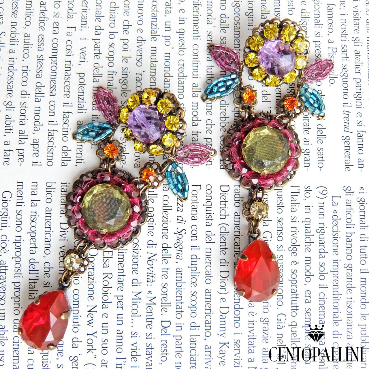 カラフル クリスタル ロングイヤリング/ピアス スワロラインストーンとチェコビーズのピアス