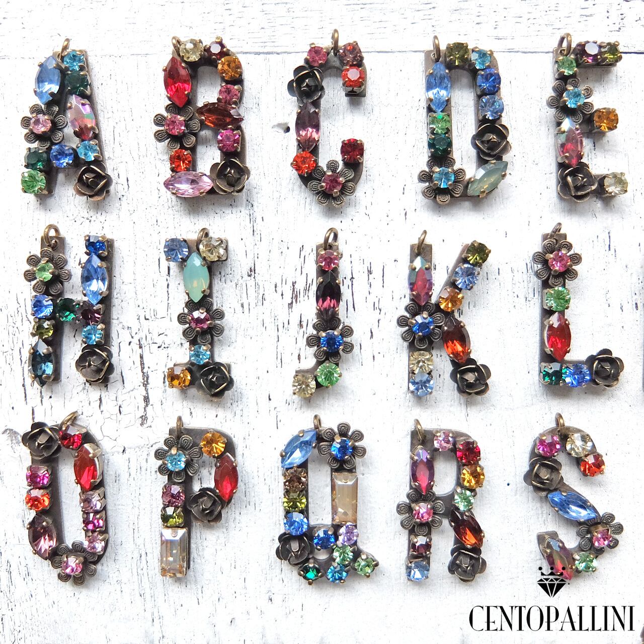 この一点物のイニシャルネックレスは、アルファベットをカラフルなラインストーンと小花で美しく彩りました。キラキラと輝くアクセサリーは、シンプルなコーディネートにも特別感をプラスします。