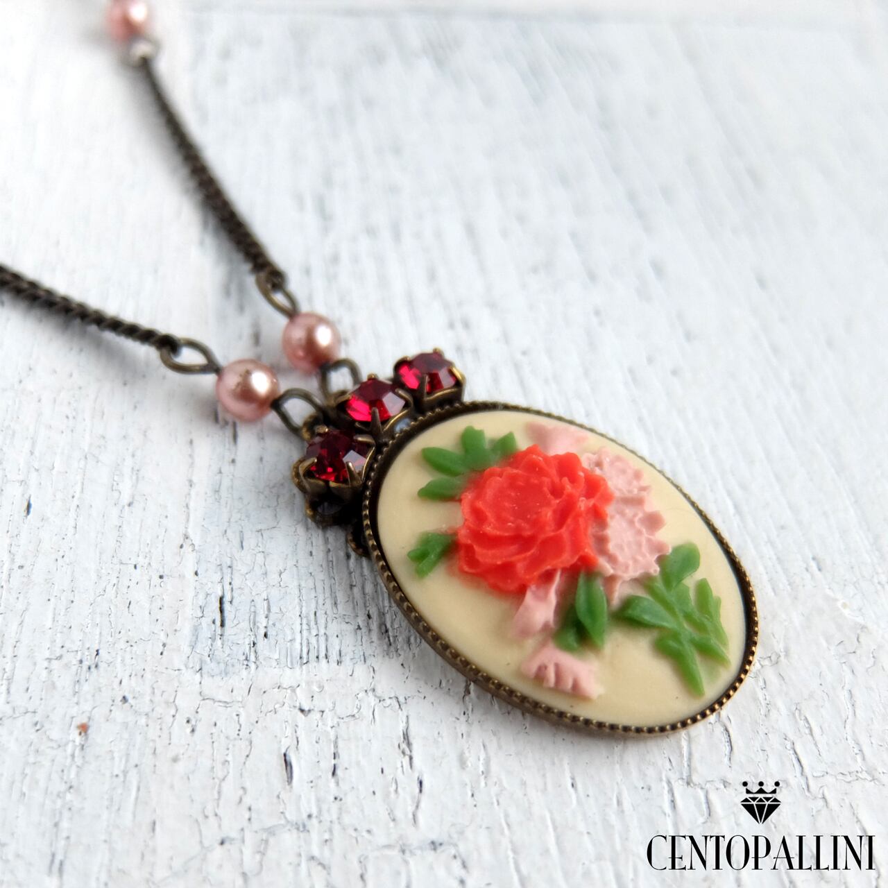 【エレガントな花モチーフ】フラワーカメオ シンプル ペンダント